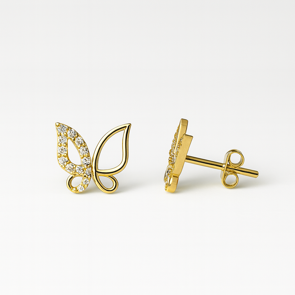 14 Ayar Parlak Sarı Altın Kelebek Küpe Çift (7 mm)
